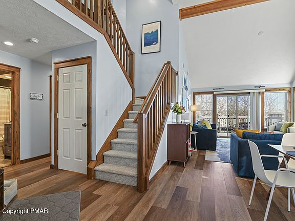 Open House Sat. 6/8 12-2pm. Exquisitely renovated, this four-bedroom townhome in Northridge at Camelback presents a seamless blend of luxury and functionality. Included are all furnishings, meticulously selected and added within the past two years. The first level hosts a master suite with a walk-in closet and full bathroom, offering convenience and privacy. Vaulted ceilings in the living room bathe the space in natural light, while providing a picturesque view through the sliders onto the deck. The kitchen has been recently remodeled, featuring new appliances, cabinets, quartz countertops, and flooring. Mechanical systems have all been replaced with brand-new components, including a Bosch HVAC system with a heat pump, Mysa II baseboard thermostats, and a hot water recirculating system. The expansive basement awaits customization, offering endless possibilities to the buyer. This "turnkey" residence is centrally located in the heart of the Poconos, offering a lifestyle of comfort and sophistication.