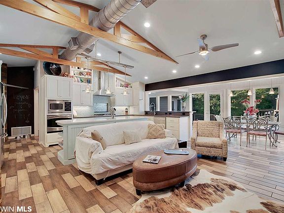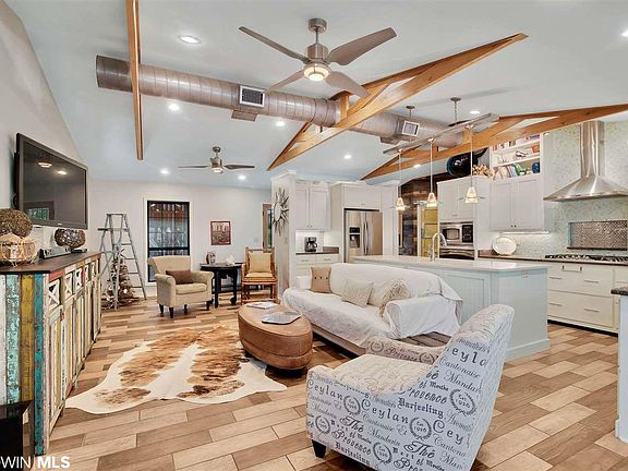 Location, Location, Location! This adorable one story cottage is nestled in a quaint, quiet neighborhood within walking distance to the bay and a nice stroll or bicycle ride to restaurants, parade routes, and the boutique shops of downtown Fairhope. Inside you will be pleasantly surprised by the vaulted ceiling and expansive open floor plan! A spacious living room adjoins a generous dining area and a well appointed chef's kitchen complete with quartz countertops, a stainless 36 inch GE Cafe' natural gas cooktop, a large walk-in pantry and a beautiful glass tile backsplash. Ample natural light is provided by numerous windows across the rear of the home. This unique residence was renovated in 2013 and includes two master suites, a home office space, metal roof, and a one car garage with extra storage room. Moving outside you will find a private deck overlooking a peaceful backyard that is ideal for outdoor entertaining and hosting those summer cookouts. Public access to the beach is just a block away!