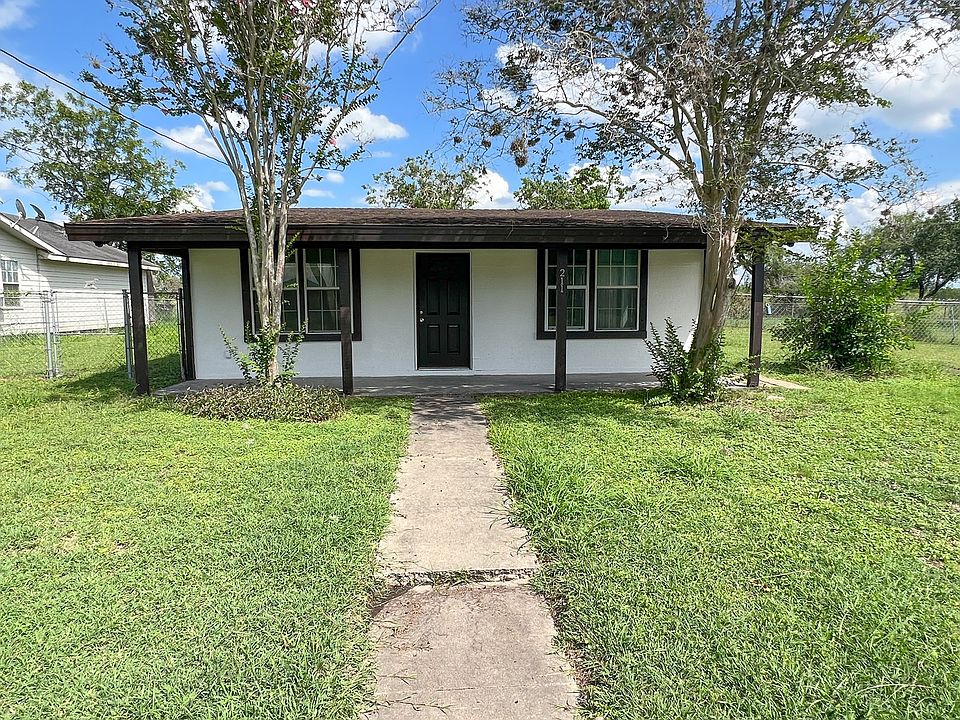 Welcome to 211 S. Texas in Mathis! This home sits on a large fenced lot perfect for entertaining and enjoyment. Just minutes from Lake Corpus Christi, shopping, restaurants and more!    This 2 bedroom 1 bathroom home has been newly painted inside and out. As you step inside this cozy home you are welcomed with an abundance of natural light, new vinyl flooring, and a cool color scheme. In the heart of the home, the kitchen has been updated with butcher block countertops, tile backsplash, and freshly painted cabinets. The 2 bedrooms are spacious to fit all your bedroom furniture, with a walkthrough hallway to enter the bathroom. The bathroom has a new vanity and spacious linen closet. At the back of the home is the perfect space for a dining table to enjoy meals and entertain. Take a look at this house TODAY!