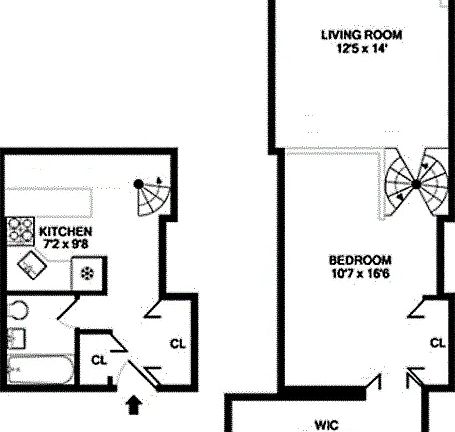 211 Thompson Street #LH Triplex one bedroom with a large walk in closet.