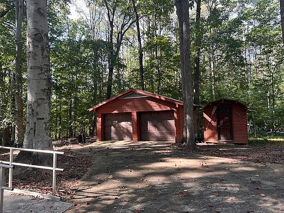 Nestled in the woods is this nice 2 BR, 1 BTH log cabin with office, 2 outbuildings and a double car garage. Home backs up to the Wildlife Refuge. Nice concrete driveway w/detached garage and detached carport for pontoon or camper.