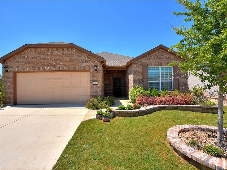 Pretty Flagstone Entry w/Raised Planters introduces this lovely Abbeyville w/Sun room. Lots of extra features have been added, like enlarged pantry, dedicated broom closet, ceiling fans in the living room, master bedroom & guest room. The extra outdoor features are perimeter fencing & pet fencing, extended flagstone covered patio, ceiling fans, lighting and remote electronic remote control screens that faces out to a Natural Habitat. Chandelier and Refrigerator in pictures do not convey with property