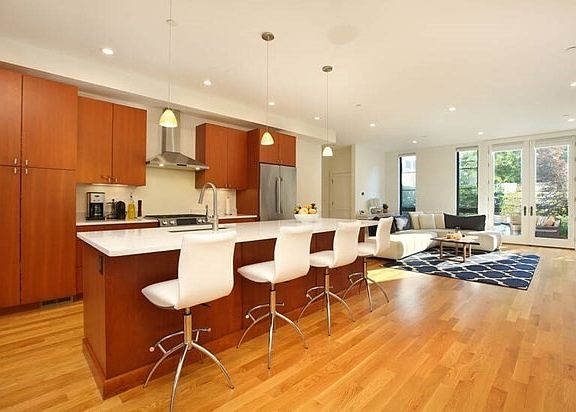 Warm and airy with amazingly high ceilings in this newer mid-rise condo building centrally located between Inman and Union Squares and two blocks from the Green Line Extension. If that isn't reason enough to jump off your couch and come see it, think about this. Floor to ceiling windows and french doors to private outside space. Perfect for a fire pit, or working from home and catching the sun. A small second space at back of unit for private table or coffee in your pjs. The unit itself has clean lines and "white dove" walls. Oversized kitchen island for creating feasts for friends and family. Open concept first floor with space for lounging and dining with a powder room. Upstairs wonderful master suite with walk in closet. Second bedroom has en-suite as well. There is a flex space on this floor, currently used as a home office and den area. You could do that or enclose it as a third bedroom. Basement has storage area and this unit comes with a parking spot and car charger. Stop by!