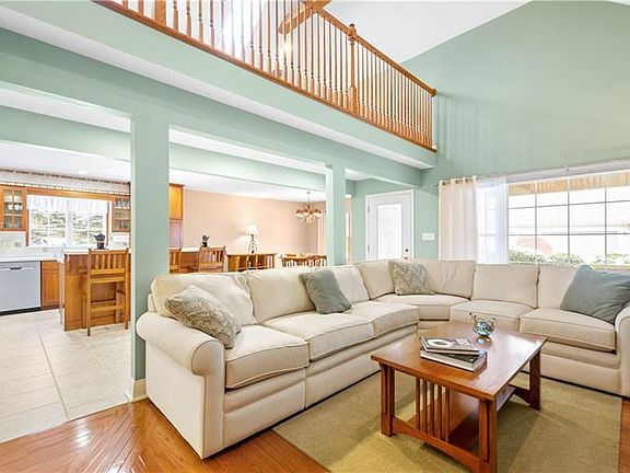 Incredible carriage home w/walk-out finished game room! Open floor plan. Fabulous updates include large island kitchen. Dishwasher & microwave new 2020, gas stove approx 5 years old. Lower oven is convection. Kitchen opens to family room featuring vaulted beam ceiling & stone fireplace. Large 2nd floor loft overlooks! 2 BR's on 1st floor, including Owner suite! Owner bath remodeled 2017 w/oversized ceramic shower including 3 body jets, rain showerhead & handheld. CT & beautiful black granite floor! Large owner BR has HW floors, large walk-in closet & private low maintenance deck w/retractable awning overlooking wooded views. In addition to loft, 2nd floor has 3rd BR, hall bath & large storage closet. Lower level boasts large game room w/ huge bar area, bonus room & walkout to large patio, partially covered & porch swing plus a natural gas line for grill. LL plumbed for powder room. Wonderful community clubhouse & swimming pool. Shopping, restaurants, parks & Narcissi Winery near by.