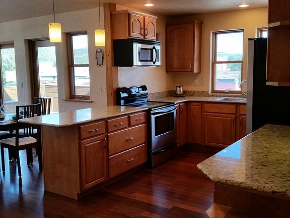 This 1100 sq. ft. 2 bedroom 2 bath high-quality condo is in the perfect location in Downtown Buena Vista. Directly across the street from McPhelemy Park and the town pond where you can paddleboard, kayak, fish or just relax while the kids entertain themselves at the playground. In the other direction is one block to East main which provides walking access to all of the downtown shops and restaurants. Condo features beautiful Brazilian Cherry hardwood floors throughout except for the tiled bathrooms. Granite countertops and stainless steel appliances highlight the large open kitchen. Vaulted ceilings in great room. Large 2nd floor deck offers amazing views of Midland Hill overlooking downtown to the east and the Collegiate Peaks to the west. Master bedroom features a second private deck. Master bath includes a walk-in shower. Built in 2005 2 bedroom 2 full baths Taxes $690 In-floor radiant heat with high efficiency gas boiler Tons of natural light / sylight Brand new dishwasher; Refrigerator approx. 1 yr old. Brazilian Cherry hardwood floors in perfect condition Washer/Dryer High efficiency electric water heater Ceiling Fans Private ground floor storage unit Custom built-in shelves in master closet 30 year roof - 1 year old Private parking spaces All brand new furniture is available for separate purchase