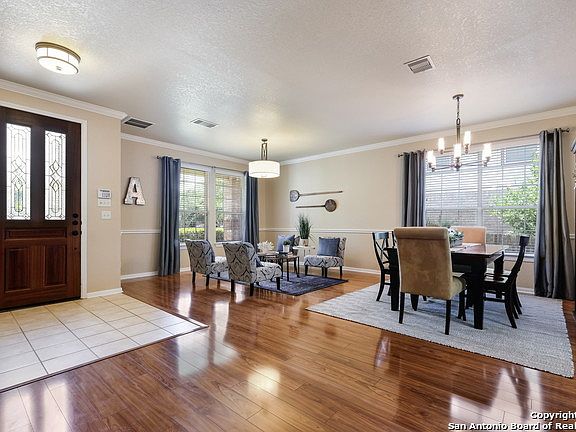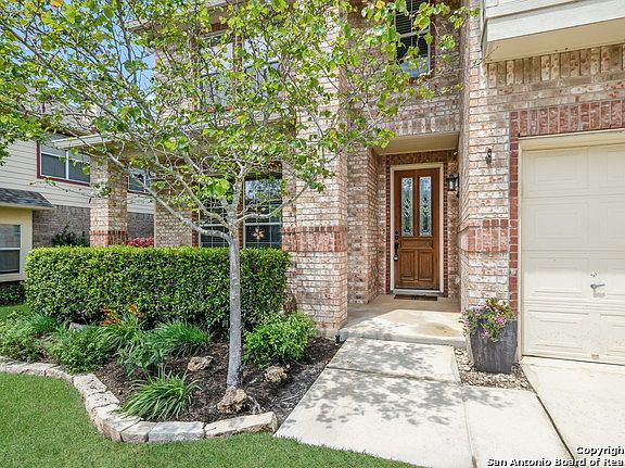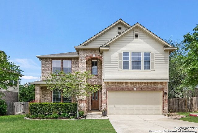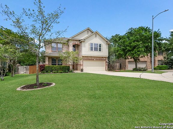 This spacious home is located on a quiet culdesac in the gated community of Mesa Verde in Stone Oak. Beautifully updated kitchen includes granite, SS appliances with double oven, island and all of this open to the family room. Wood laminate floors throughout most of the downstairs with crown molding and tons of natural light. Generous size Master up with fresh paint and updated tile in the shower. Great outdoor deck perfect for entertaining and low maintenance backyard. Water Heater - 12/16, Water softener with reverse osmosis included, Roof 2018, Gutters and rain water collector. Prime location minutes from exemplary school district, restaurants and shopping!