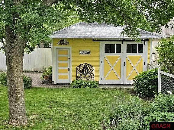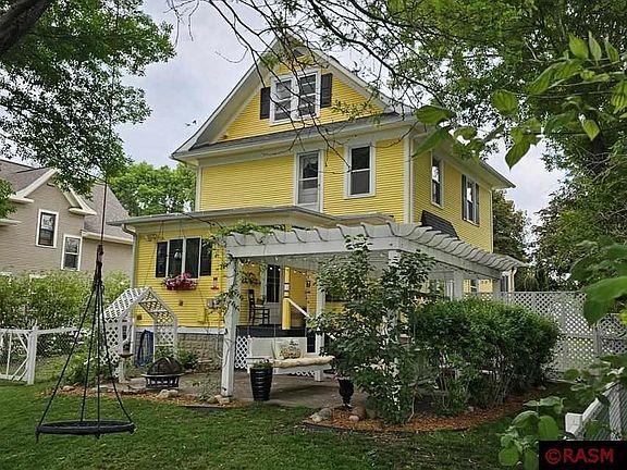 NEW LOWER PRICE! Welcome to this wonderfully warm charming getaway oasis right in the center of Blue Earth! As you walk through the picket fence gate to the front of the house you will be greeted with an assortment of flowers and colors to stimulate all of your senses. Once inside the house you will find a very nice 3 season porch a nice entry with a partially open staircase and a nice sized living room with original oak woodwork including wide crown moulding. You will also find original colonnades between the living room and dining room, original light fixtures, and also in the dining room there is a beautiful original built-in buffet with mirrors and leaded glass cabinet doors, and the original wood swinging door to the kitchen. The kitchen has been thoughtfully updated with nice cabinets and counters and flooring. On the main floor you will also find a nicely updated ½ bath. Going to the 2nd level up the partially open staircase you will find 2 bedrooms and a full bath. The main bedroom is a large bedroom that features a sitting area, wood floor, closet, and a full sized door overlooking the backyard. The 2nd bedroom has a wood floor with no closet. The full bath has been updated and has a heated floor. From here you can continue up into the finished attic, which is currently being used as a crafting area, and was most recently used as a bedroom, but the possibilities are endless. Going down to the basement you will find there is a motorized lift chair that goes to and from the main level to the basement. In the basement you will find a 3rd bedroom which is currently being used as a movie room. There is also another room that used to be used as an office but is currently being used as a non-compliant bedroom and there is also a 1/2 bath in the basement. Outside you will find the original Model T garage which is now used for storage. You will also find your private fenced in backyard urban oasis featuring a wonderful paver brick patio covered by a white pergola, lots of color and flowers and a large garden already planted so all you have to do is reap the benefits! This is truly one of those properties that you have to see in person to appreciate all that it has to offer both on the inside and the outside! Call to schedule your own private showing today!