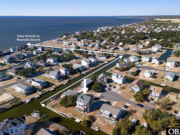 Stunning Canalfront retreat with Ocean to Sound Views in Nags Head! Nestled in a serene private cul-de-sac, this canalfront gem offers unparalleled access to the Roanoke Sound and the best of waterfront living on the Outer Banks. A boater’s paradise, this newer construction home (built in 2016) provides luxury, comfort, and stunning views at every turn. With easy sound access, a newly installed vinyl bulkhead ('22), and an 8000 lb boat lift ('18), this property is perfect for water enthusiasts and those seeking a peaceful retreat. Enjoy breathtaking views of both the Atlantic Ocean and Roanoke Sound from multiple vantage points throughout the home. The elevator offers convenient access to all levels, perfect for ease of living in this reverse floor plan home. The top level boasts a Chef’s kitchen featuring stainless appliances including an ice maker, beverage/wine cooler and a built in microwave drawer, an oversized island with ample counter space, and incredible water views that will inspire your culinary creations. You will also love the built in pantry with custom designed pull out shelving and the beautiful wood cabinetry throughout the kitchen. Savor meals while taking in stunning ocean vistas from your dining area and then relax and unwind on the expansive top-level sun deck, where you can watch the sun dip behind the sound for spectacular sunsets. The mid level features 2 of the 3 bedrooms, including the primary suite with stunning water views, and a bonus room offering flexible living space to fit your needs, whether for an office, gym, or study. Charming details such as plantation shutters and wainscoting add elegant touches throughout the home, providing both privacy and style. The 1st level offers a 3rd bedroom, full hallway bath and spacious laundry room, as well as access to the 1-car garage with an extra storage loft for all your beach and boating gear. Built for an island lifestyle, the large outside shower is a must have for rinsing off after a day on the beach or on the boat. The backyard has room for lawn games, and provides steps to the private dock, equipped with a 12' x 7'8" platform, plus a kayak launch for easy access to the water. The dock, kayak launch and bulkhead are all new as of '22. The 8000 lb. boat lift was added in 2018, and is ready for your vessel. This prime location in Nags Head offers close proximity to endless local favorites including Jockey’s Ridge, Oregon Inlet, The OBX Mall, and the newly opened Blue Moon. Whether you’re enjoying local dining, shopping, or exploring nature, everything you love about the Outer Banks is just moments away. Come experience the perfect blend of coastal elegance and outdoor adventure in this one-of-a-kind Nags Head home. *Optional Boat for Sale – Separate bill of sale available.