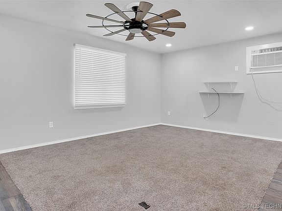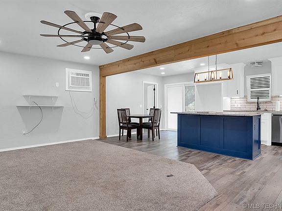 Completely remodeled and move in ready! This home is just as its fresh off of HGTV. Take a step on the front porch and walk through front door and be blown away at what you'll see. Open concept living, dining and kitchen. Cozy living room with carpet and the prettiest light fixture to allow for extra air flow, gorgeous granite counter tops in the kitchen, recessed lighting all throughout and stainless steel appliances. Walk down the hallway to enjoy your walk in pantry, your beautiful bathroom featuring a completely tiled shower. Both bedrooms are equipped with extra AC units to keep it cooler while catching up on your sleep. The primary bedroom has a great sized walk in closet. Out the backdoor, sit on your deck and enjoy your morning coffee while admiring your large and shady backyard with a newer storage building.