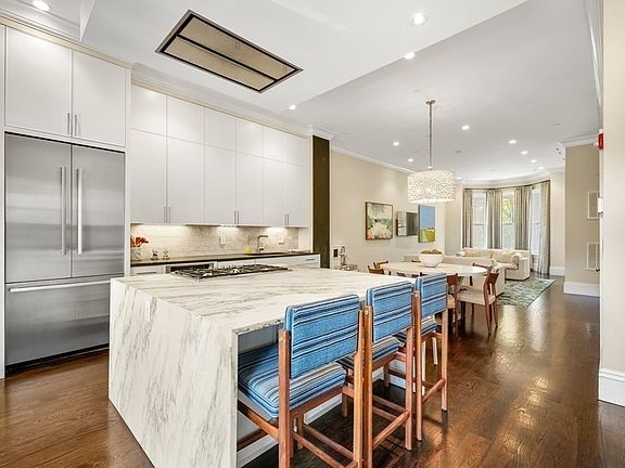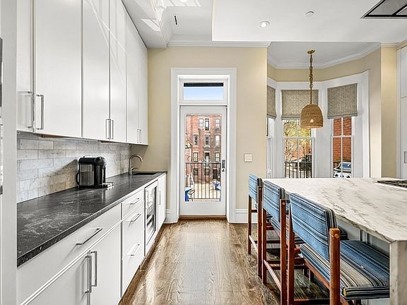 2015 new construction 3 bed parlor to garden triplex w/2 pkg & 2 outdoor spaces on enviable W Canton St on the South End/Back Bay border of the Southwest Corridor. Parlor level w/10FT8IN ceilings features open kitchen/living/dining, powder room, coat closet & rear grilling deck. Stunning kitchen features fab waterfall marble island w/counter seating for 4, Thermador appliances, gas cooking & wet bar. Middle level offers private mudroom entrance w/coat closet perfect for strollers/scooters, king-sized primary w/walk-in closet/double sink vanity/step-in shower plus guest bed/2nd bath. Lower/garden level w/sprawling family room w/gas FP built-ins, 3rd bed, full bath, W/D room, storage & direct access to private patio & tandem pkg. At the end of your block enjoy an off leash dog park, playground and strolling on the corridor. 4 min walk to Star Market or Back Bay train station. The conveniences of Boston’s premier neighborhoods w/world class shopping, dining & the arts at your doorstep.