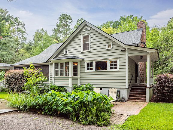 Charm abounds in this cottage style home on over 3/4 of an acre. Privacy is provided by a wooded winding driveway off the main road. Square footage represented is compiled of the 2 story home at 2400 sqft, Cottage/guest house of 252 square ft and workshop of 288 sqft. All have central heat and air. The screened room is almost 300 sqft plus front porch of 160 sqft and kitchen porch of 65 sqft. and don't forget the guest house porch for rockers and a swing. There is a garden tool shed and a double carport 24' x 20'. The owner of this home has thought of so many items to make this a wonderful home. Gorgeous wood floors, custom cabinetry, insulated windows , brick porches and steps, and a yard loaded with traditional Summerville shrubs, trees and perennial flowers. Floor plan is attached.The wooded and winding driveway is a deeded parcel to the original parcel. There is an ingress/egress easement across a neighbor and an easement for underground utilities on another neighboring yard. The privacy of this property is spectacular. Original year built is unknown but likely sometime in the early 19040"s estimated at being built originally in 1940 (this is purely a guess) although massive renovation was done from 1998 to almost 2000 to create the present home. This is a must to see. This home is filled with detailed design throughout and charm is exceptional. The room sizes are very spacious and many windows open the home to wonderful natural light throughout.