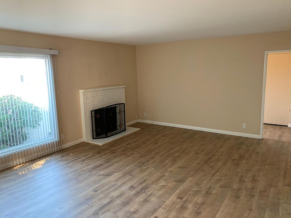 Spacious two bedroom one bath unit in San Clemente! Light and bright, faux fireplace (with cool glowing light fixture), plenty of closet space, and assigned parking spot in carport. Walk to the beach with convenient access to dining, freeways and shopping! Hard surface wood-looking floors, and nice upgrades throughout. No pets and no smoking. Landlord pays for trash, water and sewer.