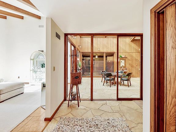 If you love architecture this is the home for you.  Stunning 15 foot beamed ceilings.  Floor to ceiling windows.  An abundance of light through-out.  6 inch stone exterior, side load garage and thermopane windows.  Situated on a wooded 1.2 acres with nothing behind you but incredible views and wildlife.  # bedrooms on the main floor with 2.5 baths.  Finished basement with office space and a large family/rec room.  The center of the home features an atrium made of flagstone floors and a gorgeous floor to ceiling stone fireplace that is a beautiful focal point.  The main floor family rooms is where you want to be, sharing this same fireplace with large windows and an unobstructed view of the land.  The kitchen features an eating bar and solid wood handmade cabinets.  Adjacent is the formal dining space and nearby is the living room.  You don't want to miss the opportunity to see this rare gem!