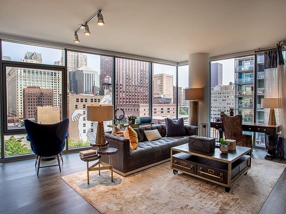Beautiful 3 bed, 2 bath Printer's Row penthouse available now! Vaulted ceilings, two-tone cabinets, floor-to-ceiling windows with lovely city views, WD, hardwood throughout, and much more! Unit is available now! Pictures reflect the finishes but are not of the exact unit. Ask me for a walkthrough video! APARTMENT FEATURES: Stainless steel appliances Washer and dryer in each home Electronic home and amenity keys Thermally fused cabinets with soft-close Lush quartz countertops Modern fixtures Wine fridge Floor to ceiling windows with beautiful views Luxury plank style flooring Nest thermostat COMMUNITY AMENITIES: Luxer parcel room Dry cleaning pickup-drop-off station More info on Dry cleaning pickup-drop-off station Lobby seating with transit screen More info on Lobby seating with transit screen Bike shop and storage Storage room with individual storage cages Electric Car charging station Crossfit gym with Technogym Equipment and Echelon bikes More info on Crossfit gym with Technogym Equipment and Echelon bikes Outdoor flex workout space Outdoor lounge Outdoor grill stations Energy efficient design Rooftop Conductor Lounge 24/7 Door staff 24/7 maintenance department Trash chutes and trash compactor Heated outdoor pet deck More info on Heated outdoor pet deck Dog spa with washing & grooming stations More info on Dog spa with washing & grooming stations Co-work open office space and micro-offices More info on Co-work open office space and micro-offices Conference Room More info on Conference Room Yoga room with Wellbeats More info on Yoga room with Wellbeats Massage Room More info on Massage Room Resort-style pool with open lounge and private cabanas More info on Resort-style pool with open lounge and private cabanas Outdoor spa with city views and deck More info on Outdoor spa with city views and deck Parking Garage