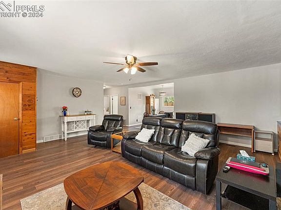 Welcome home! In the heart of Fountain is a true ranch style home, minutes from Fort Carson and Shriever AFB. Step into a spacious living room with handmade hutches framing a fireplace. Enjoy seamless flow to the dining area and kitchen, with access to a secluded backyard and detached 2-car garage. The primary bedroom has an attached bath for added convenience, with an additional 2 beds and bath down the hall. Don't miss this perfect blend of comfort and convenience in a serene setting.