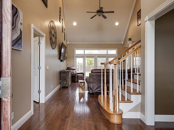 All brick custom home with beautiful entryway, vaulted ceilings and open floor plan. Multiple upgrades include hardwood floors, custom trim, kitchen features new lighting and Samsung Range with Air Fryer/ Dehydrator. Master Bedroom includes a sitting room & closet with built-ins. Master bath upgraded with glass shower doors and lighting. Main level 2nd bedroom is partially sound proofed and great for an office. Portion of backyard is fenced. Attic space with electric thermostat fan.