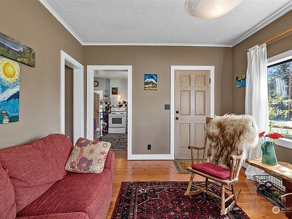 This spacious Roslyn charmer has 2 beds, 1 bath & sits on a 7,000 sq ft corner lot. Many modern updates while maintaining characteristics from the past. Sunny kitchen w/ a new refrigerator & soft close cabinets. The bathroom has a Japanese soaking tub & stained glass privacy window. Natural light pours through the skylights in the primary bedroom featuring a walk-in closet & lovely french doors leading to the back porch. All around, the yard boasts a gorgeous mature landscape full of perennials, fruit trees, & 4 varieties of berry bushes. Beautiful new fully insulated shed w/ power makes the perfect art studio. A green house to grow your own food, additional parking space, garage, and lean-to await outside. Just a few blocks from downtown.