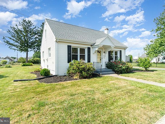 Welcome Home! This very well cared for cape cod home located in the heart of Palmyra. This 4 bedroom home offers a light filled floor plan with beautiful hardwood flooring throughout. The main level features a large eat-in kitchen with updated cabinetry and appliances, living room, two spacious bedrooms and updated full bathroom. The second floor offers two bedrooms with custom built-ins, and a half bathroom conveniently located between the bedrooms. Many recent updates include replacement windows throughout & newer architectural shingle roof. Very nice sized lot with a detached garage, mature landscape gives privacy, and shade trees. This is a lovely home, and is just waiting for you to call home.