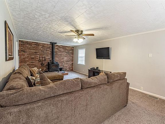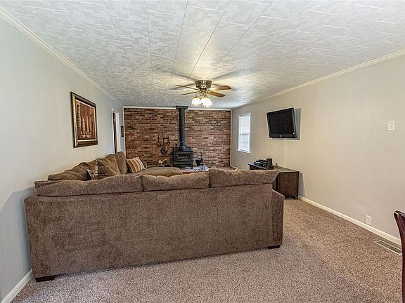 Wonderful home on a quite road with one acre! Grandroom with brick accent wall and country stove style fireplace. Kitchen has plenty of cabinets, lots of counter top space, and a work island. Bedrooms have private sink and dressing area with a shared toilet and tub/shower area. Additional full bathroom and laundry room on the back of the home. Large deck overlooking backyard and wooded area. Property includes multiple storage buildings. Make an appointment to see this great property and home!