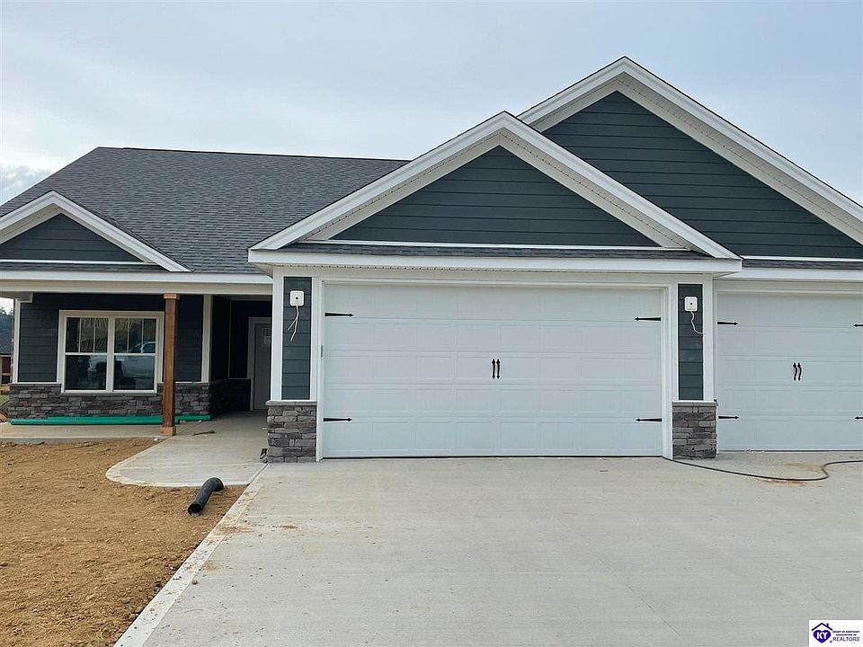 New Construction--Adorable 3 bedroom 2 bath split bedroom plan==Open floor plan with 9 ft ceilings plus treys--Kitchen with all appliances-Pot Filler and custom Range Hood-Granite counter tops-Island-Plus Pantry--Great room with linear fireplace -tiled bathrooms with double sink vanity and tiled shower in master--covered 10x14 patio and 3 car garage plus utility garage Association Fee $150/yr Foundation is poured concrete not block Estimated completion date 9/30/2022 Brick Color--Dover Stone--Dale Hollow Hardy Board-Night Gray