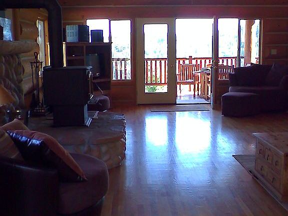 Custom log home; boasting 18" to 20" hand sanded logs with 3077 sq ft. 3 bedrooms, 2.5 baths. Tankless hot water heater makes it great when using the garden tub in the master bedroom. The garage is an oversized 3 car garage with 9 ft. doors. Wood burning stove on both the main and lower level of the home. This home is situated at the top of the mountain with 180 degrees of breath-taking views. The beauty of the mountains and wildlife are plentiful. The home has even more to offer. Schedule a time and come take a look.