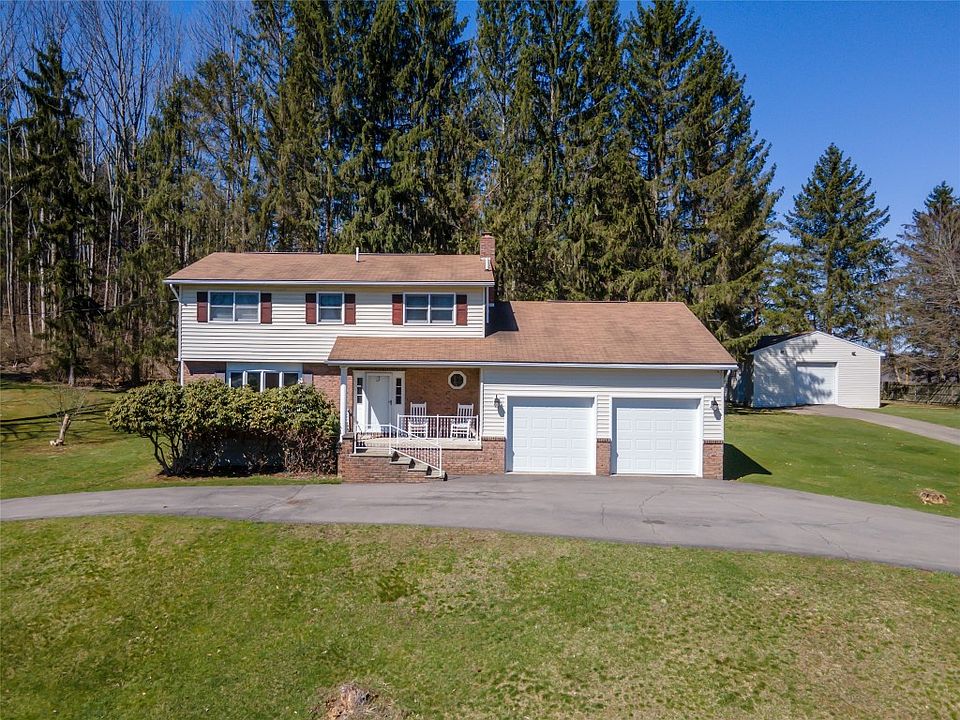 Welcome to this exquisite two-story home nestled on over 7acres. This home effortlessly blends traditional charm w/a modern