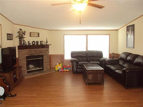 Country living at its best. Very open and bright floor plan with large living area with fireplace. Master bedroom separated from the other 3 bedrooms. One bedroom currently being used as study. Large kitchen with granite counter tops and lots of counter space. Utility room large enough for freezer. Back deck is 25ft x 14ft. With steps and ramp, large area fenced for dogs. Owner will finance with 10% ($8,600) down payment and 12% interest over 20 years.