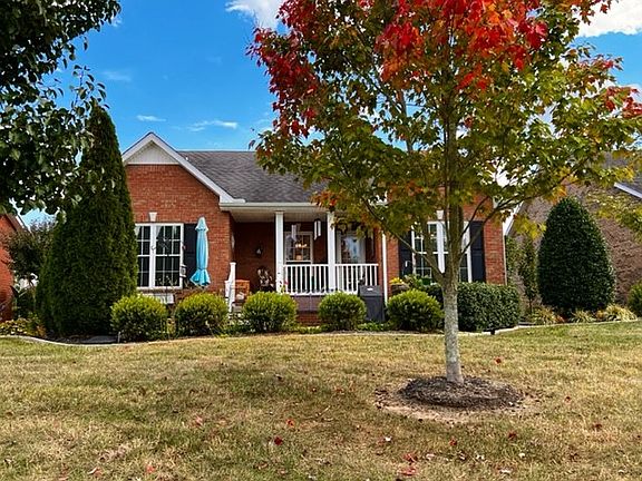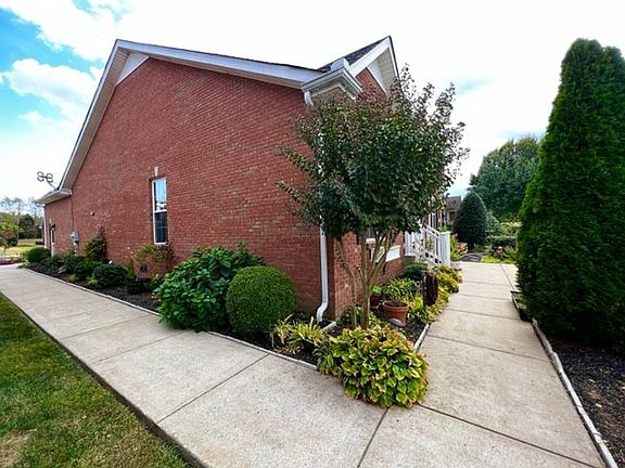 IMMACULATE INTERIOR - OPEN FLOOR PLAN - GLEAMING HARDWOOD - BIG KITCHEN - LOVELY LANDSCAPING - CONCRETE DRIVEWAY - Beautiful ALL brick home in Patio Home Community located in bedroom community from Nashville in Cheatham County, convenient to I-24W; quiet neighborhood, curbed streets with sidewalks throughout subdivision; oversized primary bedroom with tray ceiling, adjoining bath and walk-in closet; big kitchen with island; open floor plan; both baths tiled; separate laundry; attic storage; gleaming hardwood; crown; double hung tilt-in windows; immaculate interior; patio and lovely landscaping; amp; covered back porch; sprinkler system; HOA does yardwork! .23 acre yard.