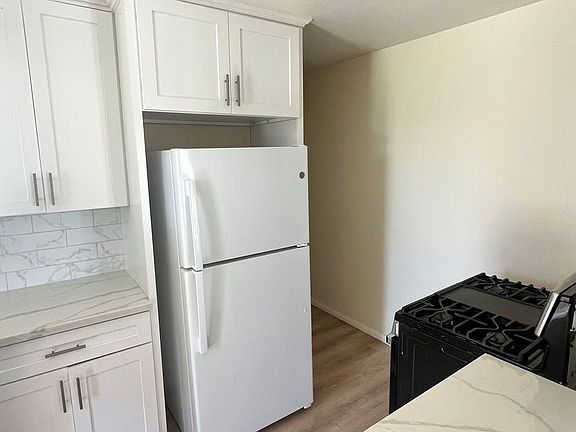 Recently remodeled single story, two bedroom, one bathroom house with one car garage next to unit. Newer refrigerator, microwave, range, and dishwasher included in highly updated kitchen. Kitchen has white shaker cabinets and Quartz countertops. Wood-like laminate flooring throughout, kitchen open to living room area. Mirrored closet doors in bedrooms. Coin operated laundry room on site. Trash included. No pets. No smoking. Available now!