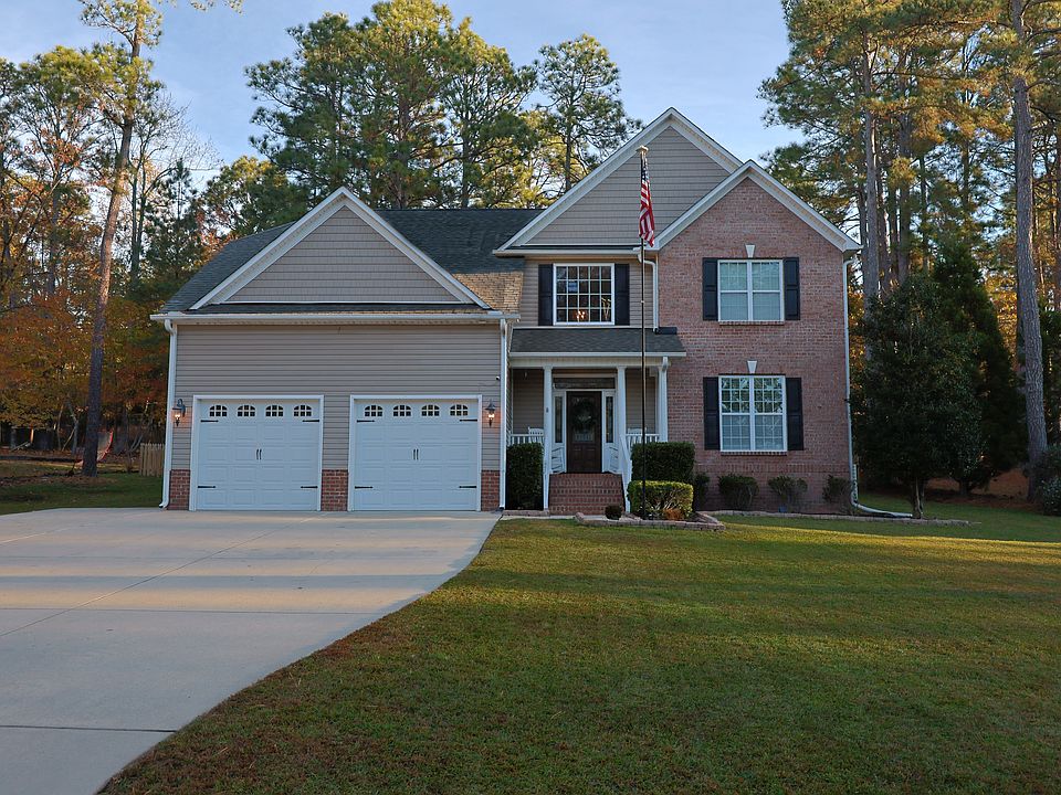 Nestled in the highly sought-after Carolina Lakes gated community, this stunning 5-bedroom, 2-full bath, 2-half bath home offers the perfect blend of luxury, comfort, and convenience. With over 2,500 square feet of beautifully designed living space, this home features elegant details such as hardwood floors, crown molding, trey ceilings, and wrought iron accents. A bonus room with a fireplace, wet bar, and sink makes for an ideal space for entertaining or relaxing. This home combines spacious interiors with a tranquil lakeside setting that makes Carolina Lakes one of the most desirable communities in the area. The semi open-concept design of this home offers spacious living areas with hardwood floors throughout the main level. The living room offers a perfect amount of natural light and features a cozy propane fireplace and access to the newly built back patio (2024), perfect for outdoor entertaining. The gourmet kitchen includes an abundance of granite counter space, tile backsplash, stainless steel appliances (new dishwasher 2024), and an under mount sink. It includes plenty of cabinetry for all your cooking needs. A bonus room offers its own fireplace, wet bar, and sink is the ultimate space for entertaining guests or creating a relaxing retreat, play room or even man cave. Master Suite is located on the main floor, the master bedroom features a beautiful trey ceiling, crown molding, and a walk-in closet (WIC). The attached master bath provides an oasis of relaxation with ample space and luxurious finishes. Upstairs, you'll find three additional huge bedrooms (Bedrooms 2, 3, and 4 plus the bonus room), all featuring carpeted floors and plenty of closet space. This home is filled with wrought iron stair rails, smooth ceilings, chair rails, and plenty of walk-in storage to keep your living spaces organized and clutter-free. The home features an extra parking pad alongside the 2-car garage, providing additional parking for guests or family or even a boat. New roof installed (2024) and also a brand new FENCED in yard (2024) for any pets or kids. Pets upon approval with pet deposit! Live in one of Sanford's most desirable communities Carolina Lakes. This family-friendly, lakefront neighborhood is perfect for those who enjoy outdoor activities like boating, fishing, and trail walking. This home is within walking distance of the fitness trail available in the center of the neighborhood. With its tranquil setting, great schools, and close-knit community, there's a reason Carolina Lakes is super sought after. Enjoy access to community amenities including the lake, playgrounds, pool, brand new playground near clubhouse and recreation areas. Renter is responsible for paying all utilities (water, gas, electric, trash). No smoking or vaping is allowed in home. The tenant may not sublet or assign the lease to another party. Tenant agrees not to engage in any illegal activities on the premises and will comply with local laws. The property is to be used solely as a residence. Tenant is advised to carry renters' insurance covering personal property and liability. The landlord will change air filters quarterly (every 3 months).