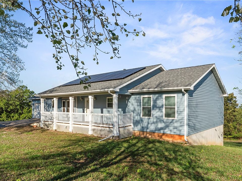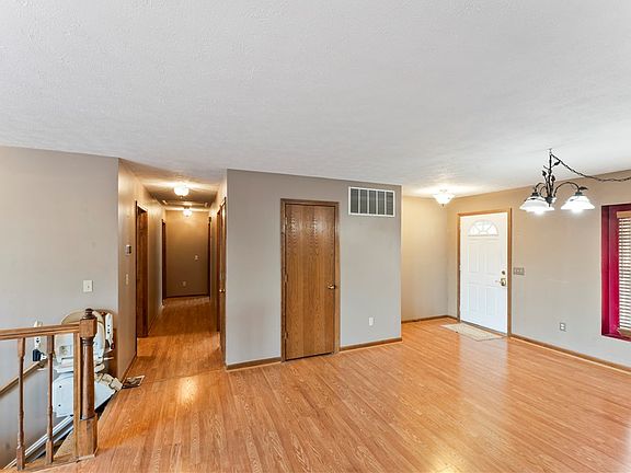 division. From the moment you drive up notice the expansive covered front porch with handicap accessibility. Inside find a charming front room with open kitchen that looks into the living room overlooking the back yard. The chef of the home will love the cabinet and counter space while preparing meals. The living room steps out on to an open deck where fireworks can be seen for miles around. Down the hall find the primary suite with ensuite bathroom and connected bedroom/office/baby's room (you choose!) and additional bedroom and hall bath. Downstairs enjoy the family room that steps out on the covered patio and into the spacious backyard. Additional bedroom with ensuite and walk-in closet, laundry room, bedroom and office(or media room) make this home have potential for 5-6 bedrooms. With an oversized garage and beautiful scenery what more could you ask for? Schedule your private showing today!