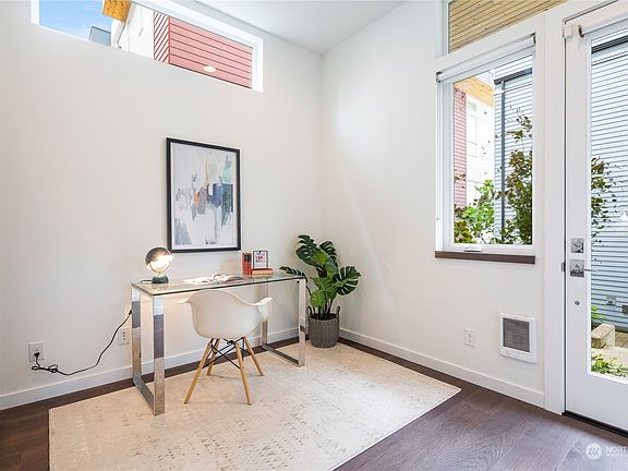 Centrally located in thriving Beacon Hill, blocks from parks, shops, cafes, restaurants and groceries, with incredible 360-degree views from the rooftop deck. Where do you look first, when you can choose from the Olympic Mtns, Puget Sound, Mt. Rainier, the Cascade Mtns., and downtown Seattle?! South-facing end-unit living (only one shared wall!) brings excellent natural light year ‘round. Welcome to B6, by Isola Homes. Built in 2016 means no HOA dues. Mini-splits provide the cool in the summer, and heat in the winter. A bonus room works perfectly as a home office. The rooftop deck is plumbed for both water and gas, and ready for entertaining. Dedicated parking, accessible from the paved alley. This is living fine. This is finally living!