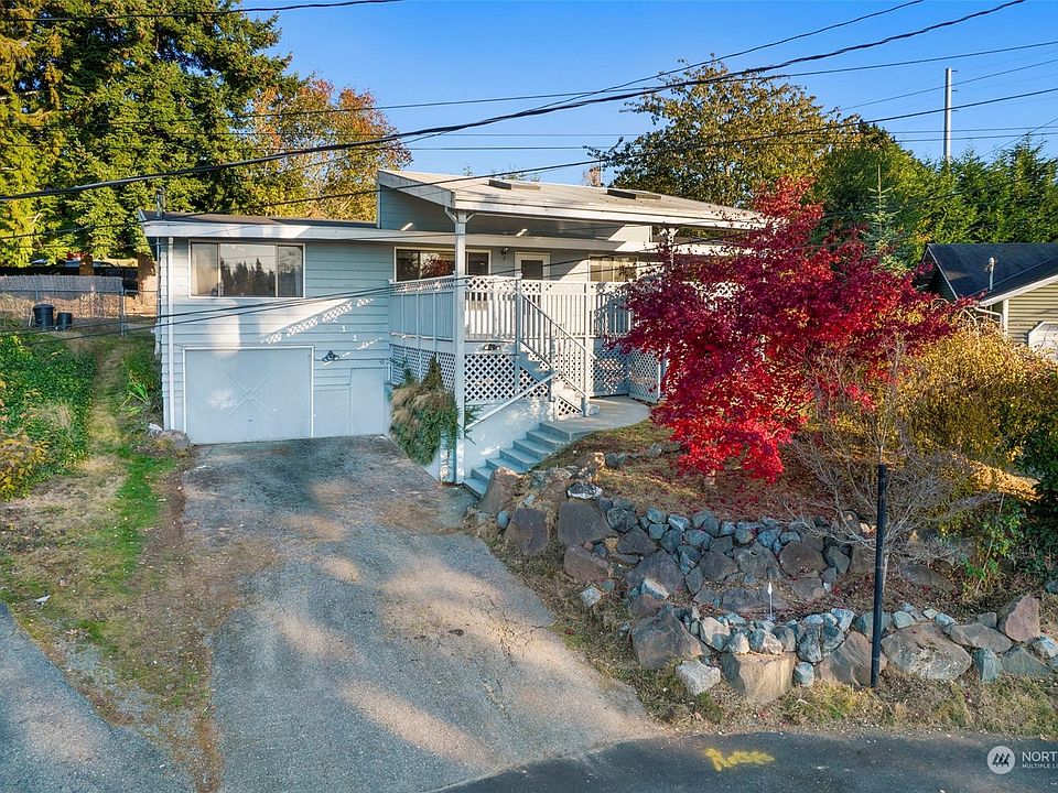 Welcome to this mid century gem. Conveniently located minutes from I5 and 405 making this home ideal for the commuter. You will find thoughtful updates to the bathroom and kitchen, and fresh paint throughout. Freshly stained hardwood floors, attached garage and entertaining spaces in both the front and spacious backyard. Seated high above the street at the end of the cul-de-sac where you find privacy that is hard is to find. High efficiency mini split A/C located in the living room and primary bedroom.