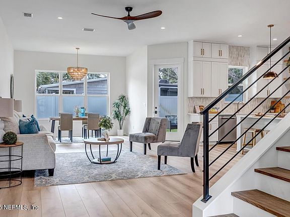 Welcome to 2110 4th Street, a newly constructed coastal luxury residence by Atkins Builders, located in the heart of Neptune Beach. This thoughtfully designed 2,484 square foot home offers 4 bedrooms and 3.5 bathrooms, blending modern architectural elements with casual beachside living. The interior features an open-concept layout with abundant natural light, clean lines, and a neutral color palette suited for the Florida lifestyle. The gourmet kitchen includes a spacious center island, premium finishes, and seamless flow into the dining and living areas, which open to a covered patio—ideal for indoor-outdoor entertaining. The main-floor primary suite provides a private retreat, complete with a spa-inspired bathroom offering dual vanities, a large walk-in shower with dual shower heads, and a walk-in closet. Upstairs, a bright loft provides a flexible space for a reading area, home office, or media room. A private en-suite bedroom accommodates guests comfortably, while two additional bedrooms are connected by a well-designed Jack-and-Jill bathroom, each with its own vanity and toilet and a shared tub/shower. Additional features include high-quality construction, modern coastal finishes, and an exceptional location just blocks from the beach and in close proximity to the shops and restaurants of Atlantic Beach Town Center. This home offers a rare opportunity to own new construction in a highly sought-after beachside community.