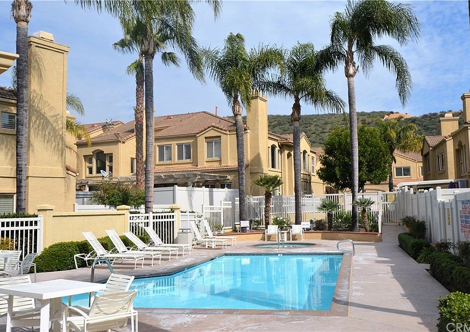 "ALTIA" 2 Bedrooms, 2 1/2 Baths, 1371 Sq/Ft, Townhome in Corona Ranch. Great location down the street from parks, excellent shopping (Costco & 99 Ranch), restaurants, Metro link station, I-15 & 91 freeways to LA and Orange Counties. .. Bright & Open Floor Plan, 18 Foot ceilings as you enter, Plenty of windows gives off lots of ambient light. Very nice kitchen with white cabinets, granite counters & back splash, Stainless steel appliances, stainless steel sink, breakfast counter, dual sided fireplace, spacious family room with sliding glass door to rear patio, laminate wood floor and breakfast nook. Upstairs has 2 bedrooms, 2 baths and loft/office. 2 sinks and walk-in closet in master bath, mirrored wardrobe closet doors in secondary bedroom and Berber carpet throughout upstairs... Rear patio has pavers, vinyl fencing, full sun and mountain views. Built in 1992, 2 car attached garage with direct access & steps to association pool and spa.