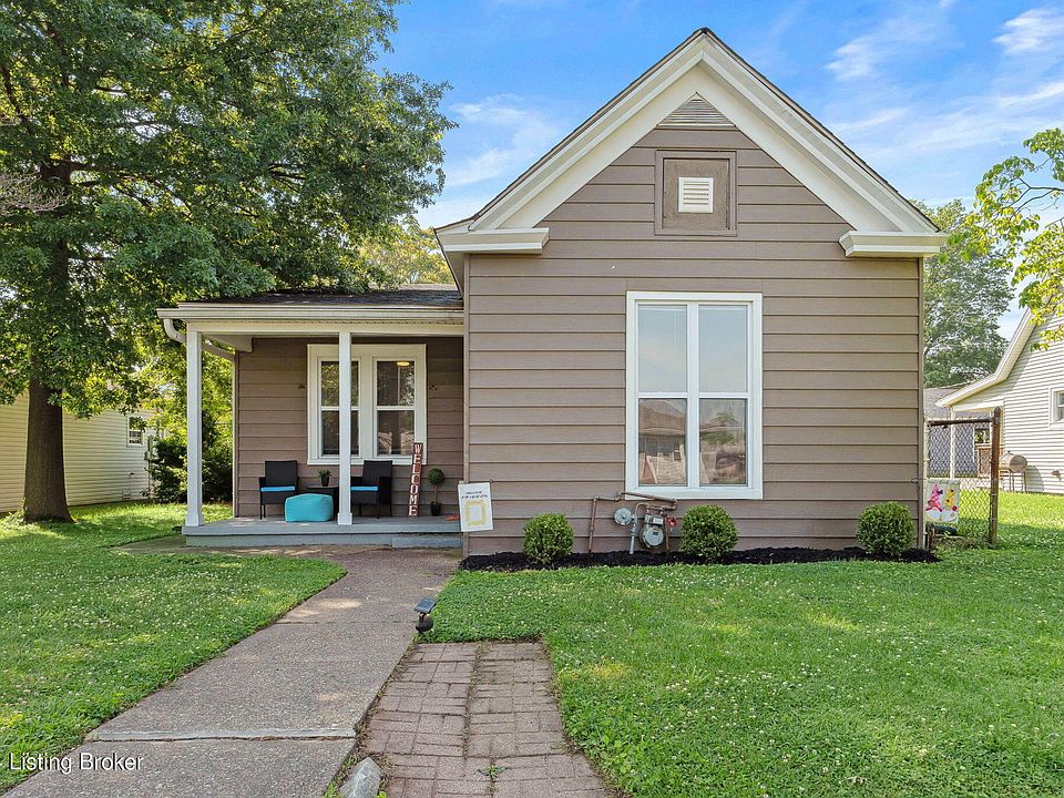This recently renovated, move-in ready historic home in New Albany has 3 bedrooms, 2 full bathrooms, and a ton of character and charm! Everything was renovated in 2021, including a brand new roof installation. With spacious rooms, neutral colors, and recessed lighting, you'll love the newer LVP flooring that flows throughout the living room, dining area, and into the kitchen. The primary bedroom has a walk-in closet and a private bathroom ensuite with a gorgeous and unique tile design, along with newer flooring, vanity, and fixtures. The kitchen has a great layout, as well as tons of beautiful white cabinetry and newer flooring, cabinets, countertops. There are two additional bedrooms and another exquisitely remodeled full bathroom with impressive tilework and design. Outdoors, your private backyard has a full privacy fence and a shed for all your yard supplies and other storage. In your front yard is a strikingly beautiful tree, currently in bloom. This home is in a trendy neighborhood and conveniently located within walking distance to Ohio River Greenway, a 7.5 mile trail connecting the communities of New Albany, Clarksville, and Jeffersonville, including the Big Four Bridge and Riverwalk. With so many options for dining and retail in New Albany, this one has everything you've been looking for. Schedule a private tour today!