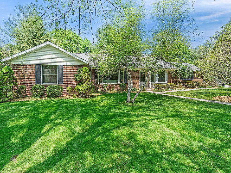 Best value in the Winchell neighborhood All brick ranch on private double lot, spacious floorplan offering over 1,700 sq ft of main floor living, hardwood floors, plaster construction, replacement windows throughout, large living room with fireplace, formal dining room bay window, family room with fireplace and built-in bookshelves/cabinets, kitchen with picture window overlooking backyard, primary suite with remodeled bath with walk in shower, immense second bedroom with wall of closets, three season room with tile flooring, central air, attached two car garage, underground sprinkling system, walk to Winchell Elementary School, Woods Lake, Oakwood Plaza, and D&W. Minutes from WMU, Kalamazoo College, and downtown. Kalamazoo Promise.