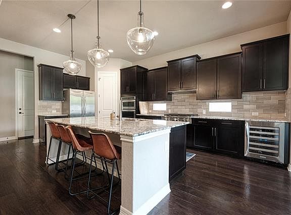 WOW! Open & spacious 1-story home w/picture windows, tons of upgrades & meticulously maintained. High quality hardwood floors, coffered ceilings, kitchenaid commercial appliances, wine cooler, granite countertops. Luxury master suite features bay window sitting area, garden tub/shower, double vanities, walk in closet. French doors lead to 4th bedroom/study and lrg bedrooms. Oversized lot, extended covered patio w/gas stub, exterior lighting. Photos show before move out and vacant. OPEN HOUSE SAT & SUN