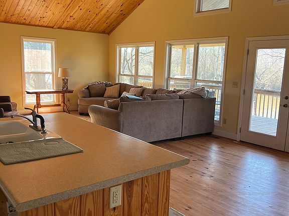 Peace and Tranquility Surrounds this Beautiful Riverfront Property 153’ River frontage. Flat lot. This 3 bedroom 2.5 bath home offers an open floor plan with a cozy family room, kitchen with island , stove and microwave. Spacious breakfast room, laundry room, 2 bedrooms and a full bath on the main floor. Beautiful hardwood floors, tongue and groove cathedral ceilings. Loft bedroom with a full bath. Balcony off one bedroom. Most all of furniture to remain including washer and dryer. Oversized covered porch, amazing views of the river, easy access to river, a must see.