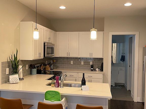 FULLY FURNISHED Gorgeous, modern townhome just steps from Jefferson Park! Highly sought after location. Minutes from everywhere - Sloan's Lake, LoHi, Highlands, Confluence Park or Union Station. Or avoid 25 and hop on 70 or 6 to quickly get to the mountains! This townhome has it all from top to bottom. Entryway is easy and inviting right off the tree lined Decatur Street. Open floor plan - bright, well-lit living, kitchen and dining room with beautiful hardwood floors. Well equipped kitchen has quartz slab countertops, nickel hardware, stainless steel appliances, subway tile backsplash and pendant lighting. Comes equipped with everything a chef could need! A 4K UHD TV with built in streaming services ready for watching all your favorite shows. Full size washer/dryer and guest bathroom easily accessible off main living area. Upstairs is a second bedroom with a full size bed and pillow-top mattress and black out curtains for a sound night sleep as well as a private, ensuite bathroom with full size tub/shower combination. Down the hall is the open office/exercise area with large window perfect for working or working out. High speed internet and desk with ergonomic office grade desk chair. Finally, the large primary suite has a queen sized adjustable platform bed, walk-in closet and a walk-out rooftop deck. The primary bedroom also features ensuite bathroom with double vanity and large shower. Rooftop deck overlooks the city providing amazing views both day and night! Property also has some great smart features including a doorbell with video camera, a NEST smoke detector, and an Ecobee thermostat. Walk to Briar Common Brewery & Eatery, Sexy Pizza, Little Machine Brewery, the stadium, downtown and more! Absolutely no smoking of any kind on property or premises. No pets unless otherwise agreed upon. In unit laundry. Smart thermostat. 4K TV. Separate home office-workout space. Attached garage parking space with spacious storage room for gear just inside garage included as well as easily accessible street parking. Owner pays for water and garbage.