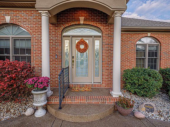 Fabulous views from this beautiful all brick 5-6 BR 4 Full Bath ranch with fully finished lower level with walk-out! Almost two homes in one with all the space...over 4300 sq ft total. Each level has 2-3 Bedrooms, 2 Full Baths, and a fireplace.The views of the former golf course are also stunning from many rooms in the home. 3 Car Side Load Attached Garage with pull-down stairs, sink, insulated doors, and large aggregate driveway/parking area. The interior is full of gorgeous craftsmanship with the arched doorways, double-tray ceilings, engineered hickory hardwood floors, and exquisite trimwork. The large Master Suite has a beautiful Bath with separate tub, new shower, and plenty of closet space. The Main Floor Kitchen has a large island and a lovely dining space with fantastic views, and plenty of overhead lights. The Office has windows on two sides with even more views, and a closet that would help make this a 3rd BR on the main floor. The spacious laundry has a nice-size storage closet. Downstairs you will find a Great Room with fireplace and Kitchen Area, 2-3 more BRs, 2 Full Baths, 2nd washer and dryer hookups, and unbelievable storage! The exterior door opens to a large covered patio leading to a wonderful new Firepit Area, and there are steps to the deck above. Also outside is an attractive metal fence to preserve the views, outside lighting, irrigation system, Generator, and Landscaping.