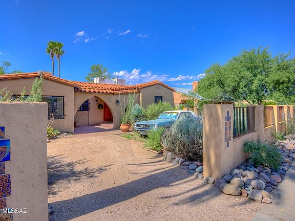 This vintage 1934 gem just blocks from the University of Arizona needs some fixup to restore it to its original beauty, but opportunity knocks at this price! The living space includes two bedrooms, 1 bathroom, great room with fireplace and formal dining area, and an extra room for office or additional bedroom potential. Back yard features many curious and unusual plantings, walkways, and a nice storage shed. This property is just blocks from shopping, entertainment and of course schools including the UofA. Home qualified for historic neighborhood property tax reduction for owner occupants (buyer to research this if of material matter). This is a cash only, as-is sale at this price. Hurry!
