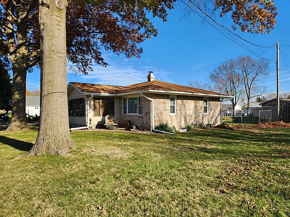 Brick ranch located in the Village of Emerson. Many updates including new bathrooms, all copper plumbing and PVC sewer lines, gutters and soffits, several windows, fireplace mantle, wood laminate in living room, walk doors on garages, and more. Enjoy the front 4 season room. Has second kitchen and bar room in the basement. A second garage is in the fenced back yard, which has an insulated man cave and storage. The extra lot is included and has a second well and new septic system installed.