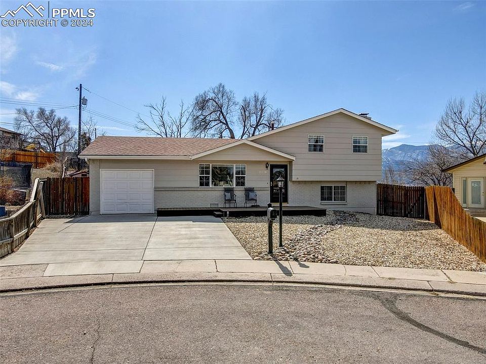 Don't miss this opportunity! Beautifully updated and remodeled throughout. This desirable tri-level boasts three bedrooms, two car garage and generous backyard. The kitchen is a chef's delight with granite countertops, crisp white cabinetry, and rolling stainless steel island to prepare meals for guests and loved ones. Two bedrooms are located on the upper level with a spa like new bathroom. The lower level bedroom is a retreat of its own with access to the backyard. Enjoy the breath taking view of Pikes Peak as you spend time out on the covered deck. Desirably located on a quiet cul-de-sac. New concrete driveway, new luxury vinyl flooring, new carpet, new trex decking, too many upgrades to list so you must come see for yourself. You will fall in love with this amazing home!