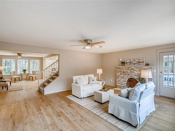 - Kitchen Features: Breakfast Bar, View to Family Room, Stone Counters, Kitchen Island, Breakfast Room, Cabinets White