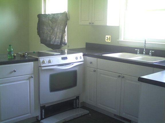 Interior is in good shape. Beautiful hardwood floors in most of the house. Quality ceramic tile shower enclosures and floors in both bathrooms. Lots of storage space in kitchen. Appliances remain.