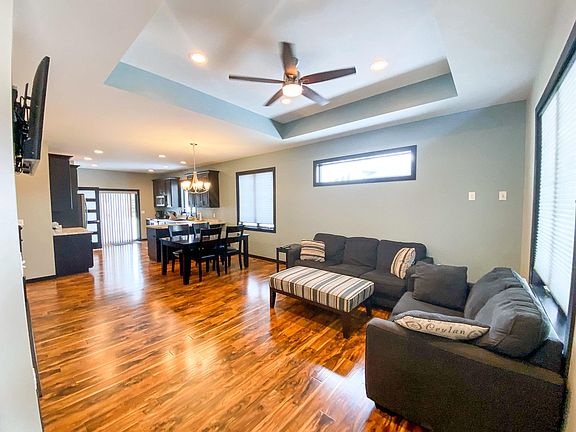 Beautiful, quality, custom built 4 bedroom, 3 bath ranch home that has a lot of custom features to include Wood Andersen 400 series windows, large 1043 sq ft finished heated garage, 42'' tall kitchen cabinets, 9 ft ceilings, Air exchanger, BIB insulation system, walk in closets in all bedrooms, walk in pantry, and a nice sized patio and yard to enjoy this summer. Home comes with all kitchen appliances and a built in driveway basketball hoop. Take a look and you will fall in love with the cul de sac location that is close to the new Dakota Prairie elementary school. Call today.