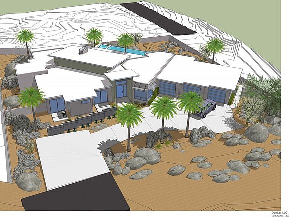 Standing on a rise with amazing mountain & valley views is this soon to be coveted modern home positioned for maximum privacy & views. Under construction with completion this Fall. Perfect time for the 1st buyer to pick personal finishes to this extraordinary home high above Palm Springs! 3 bedrooms & 3.5 baths. Master suite offers; sliding glass doors to patio, the lap pool/spa & amazing mountain vista views, walk-in closet, double vanities, large shower with door to outside & lg. soaking spa tub. Generous & open design for today's perfect desert living. High ceilings, walls of glass, open chef's kitchen with dining island & living area with fireplace. Outdoor fire feature lounge area. 3 car garage with abundant additional parking for at least 5 cars. Linear architecture with grand spaces. Stunning rock outcroppings add to the feeling of being fully surrounded by the desert.Central vacuum system, security system & prewired for music/speaker systems & surround sound w/multiple capabilities. 2772 Sq Ft / 1 half acre lot / Fee Simple Land
