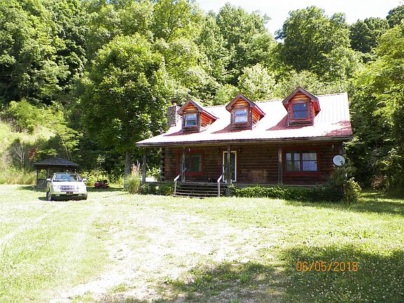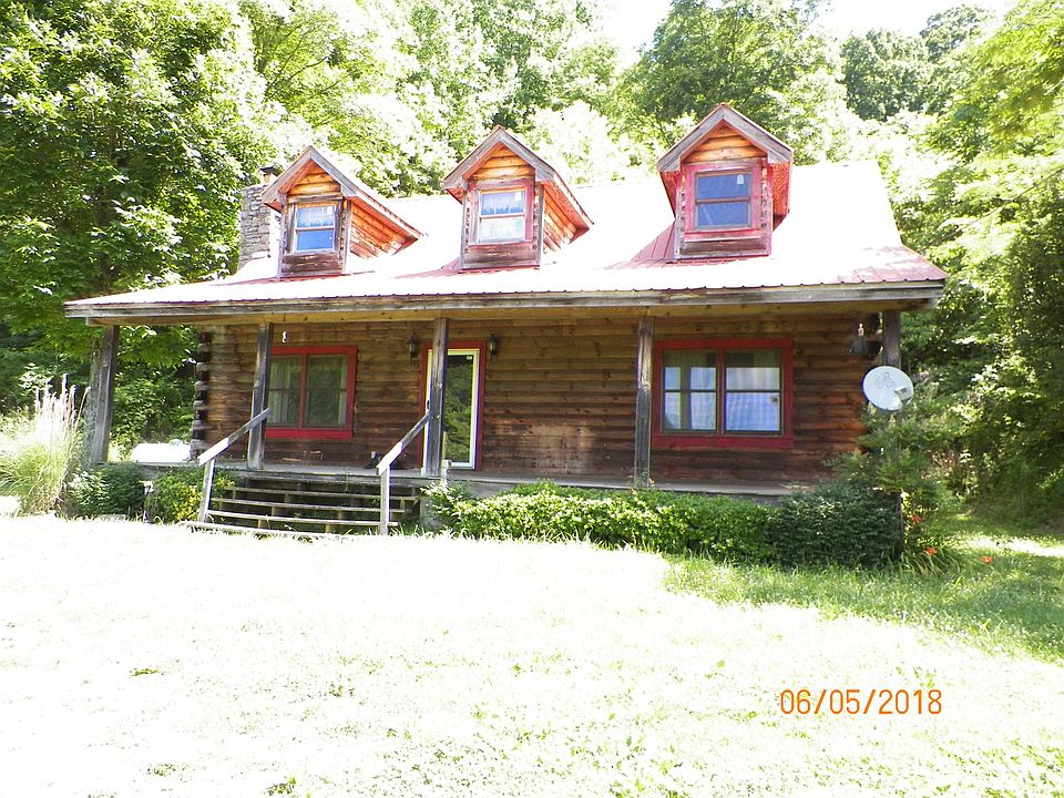 HUNTERS PARADISE!! THIS UNIQUE PROPERTY HAS 36.82 ACRES OF WOODS AND HILLS, COMPLETE PRIVACY, PLUS A 1980 S.F. LOG HOME WITH 3 LARGE BEDROOMS AND 2 FULL BATHS, WOOD WALLS AND CEILINGS AND FLOORING UPSTAIRS, LOVELY L.R. WITH FIREPLACE PLUS NICE KITCHEN WITH STOVE, REFRIGERATOR AND DISHWASHER., COVERED FRONT AND BACK PORCH PLUS HUGE STORAGE SHED