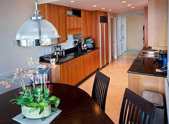 Direct ocean views over rooftops & Mediterranean-type piazza from LR, Kitch, Master Bed&Balcony.Private keyed elevator opens to foyer with Venetian plaster&walnut crown molding. High-end designer furnishings, 3 wall-mounted flat screen TVs. Split floor pl an. Faux paint in baths. Washer/Dryer in unit. Large kitchen w/ bkfst area, Snaidero Italian wood cabinets, granite, Subzero frig, small wall-mounted TV. Tennis court, 2 pools, 2-story gym w/ racquetball/squash court, chair & towel service on beach.